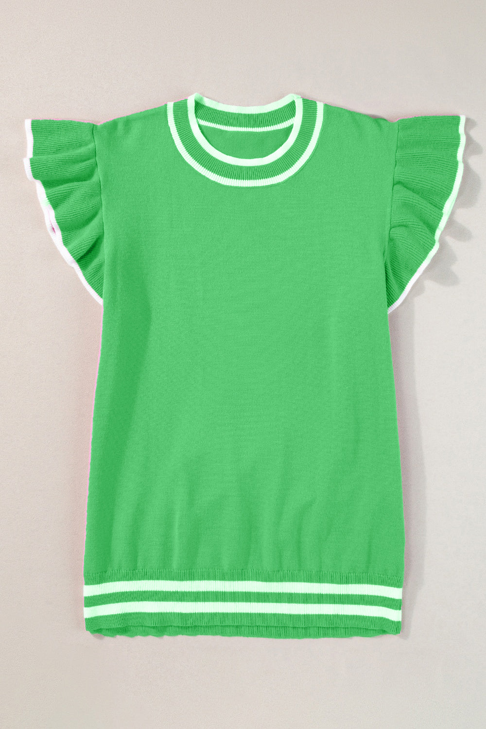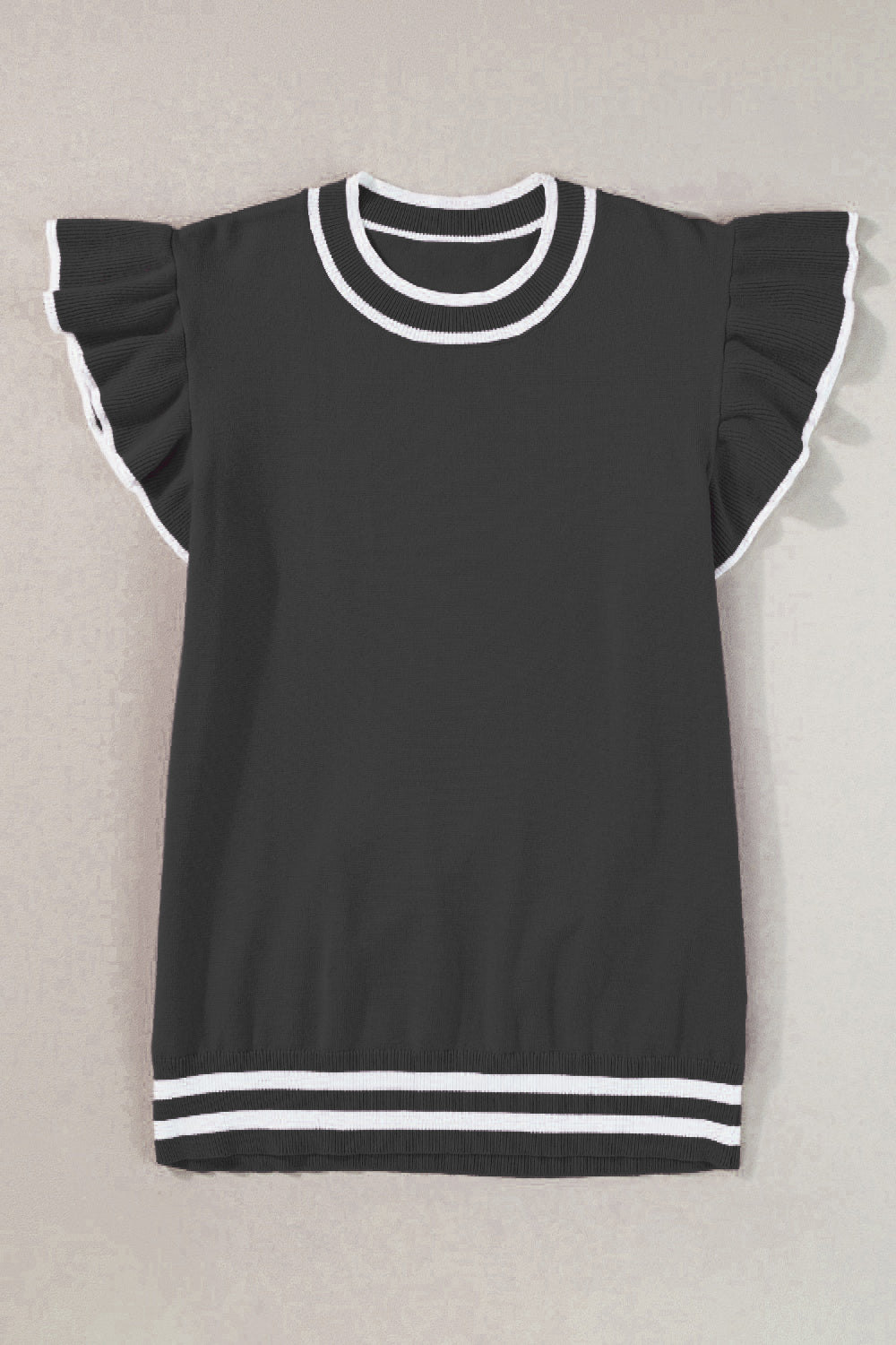 Ruffled Round Neck Cap Sleeve Knit Top